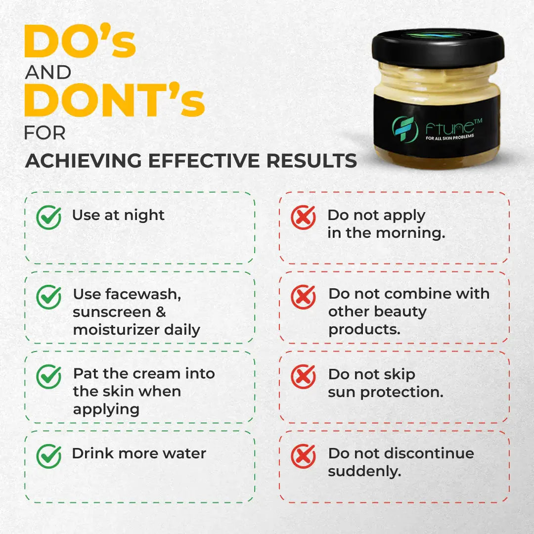 Ftune beauty cream is the one-stop solution for all your skin beauty needs. The perfect balance of several herbal oils makes it perfect for every skin type, both men and women. Ftune cream helps to remove black spots, acne, and white knuckles. What's more, it can also nourish your skin. As the best skin brightening cream, it ensures you get the skin you are yearning for at the end of the day..